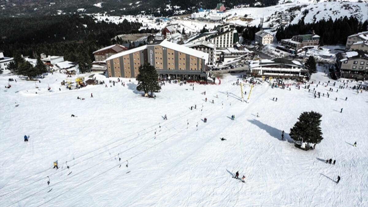 Uludağ'da güneşli havanın da etkisiyle pistler doldu.