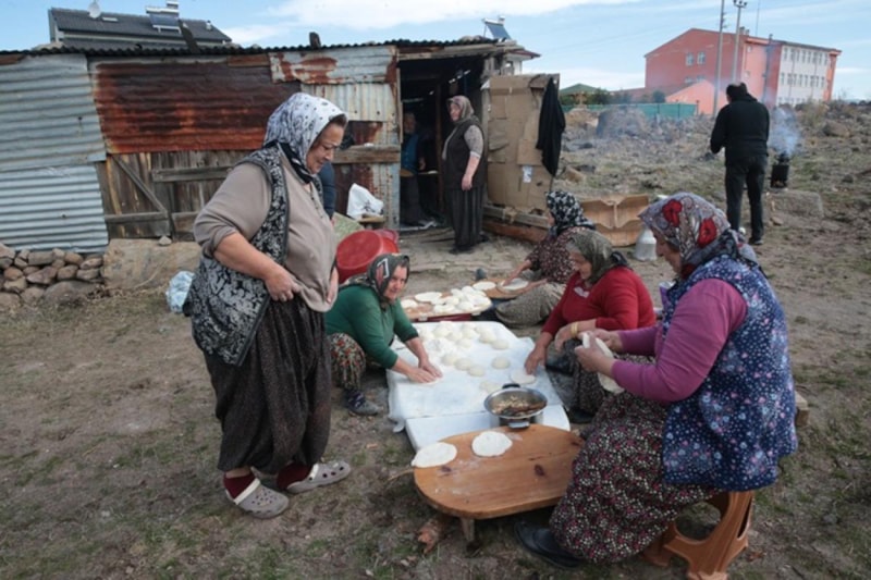 Köroğlu Mahallesi'nde yaşayan kadınlar, geçmişte olduğu gibi imece usulü yaptıkları kürülü hazırlamak için belirlenen zamanlarda bir araya geliyor.