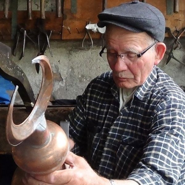 79 yaşındaki bakır ustası, izin sayesinde dükkanını açtı