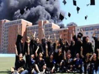 Kepli öğrenciler bu günü ölümsüzleştirmek için kamera karşısına geçtiklerinde okul binasında yangın çıktı.