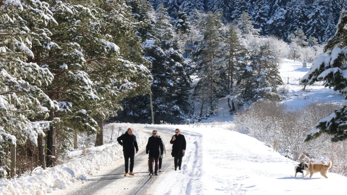 Günübirlik ve konaklama için Abant'a gelen yerli ve yabancı tatilciler, göl çevresinde yürüyüş yaparak ve hatıra fotoğrafı çektirerek karın tadını çıkardı.