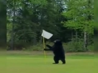 ABD'de bir golf sahasına giren ayı, golf oynayanlara korku dolu anlar yaşattı. Önce sahadaki bayrağın yanına giden ayı, oyunu böldü.