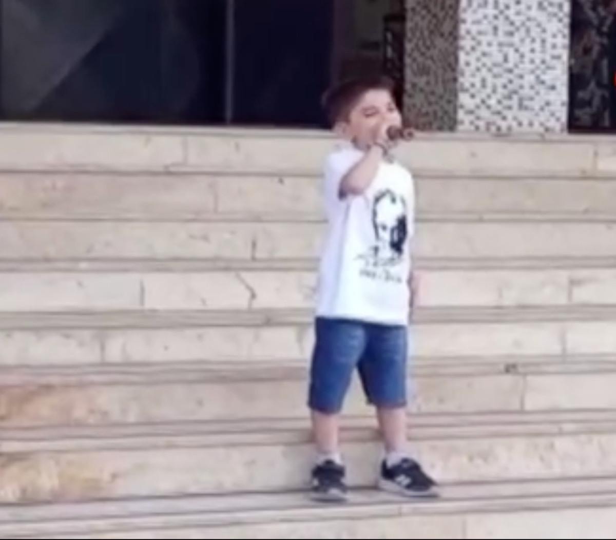Arif Nihat Asya İlkokulu'nda 2. sınıfta öğrenim gören Hacı Berke Sakallı (8), törende sahneye çıkarak şarkı söyledi.