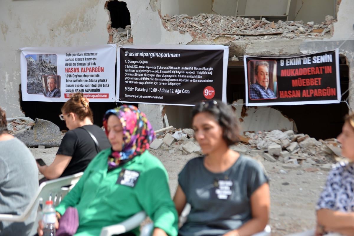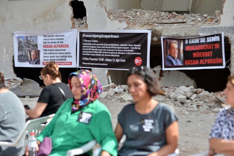 Adana 12'nci Ağır Ceza Mahkemesi'nde 9 Ekim'de görülecek duruşma öncesi yakınlarını kaybedenler, bina enkazında toplandı.