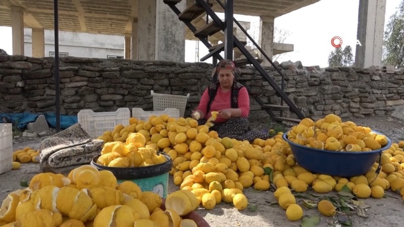 Dökük ve dalında kalan narenciye ürünlerini kurutan Adana'nın Kozan ilçesine bağlı Kazan Mahallesi sakinleri 3 ay boyunca zorlu mesai yaparken, imece usulü hazırlanan limon kabukları çamaşır gibi iplere asılarak balkon ve damlarda kurutuluyor.
