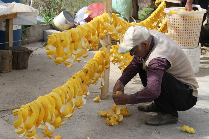 10 yıldır emekli maaşına ek gelir olarak limon kabuğu kuruttuklarını aktaran 68 yaşındaki Nevzat Yaşar, "Ağaçta kalan limonları soyuyoruz. Dalında 7 TL idi, kurusu 18 TL'den satılıyor. Çok zor emeği çok. Bütün köy bu işi yapıyor. Dalında kalacağına ekonomiye kazandırılıyor.” dedi.