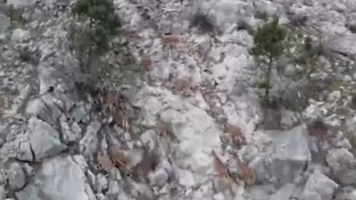 Yaklaşık 15 dağ keçisinin hızlı şekilde kayalıklara toplu tırmanışı, ilginç görüntülere sahne oldu.