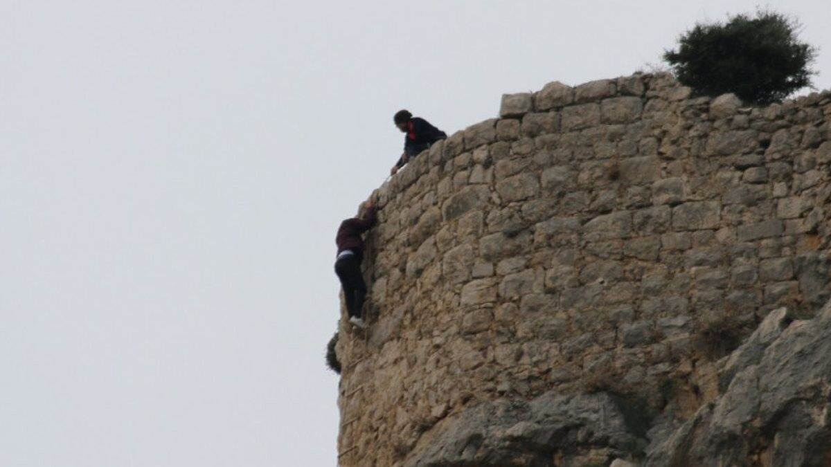 Adana'nın Kozan ilçesinde 17 yaşındaki Sefa Muğultay, sabah saatlerinde gezmek için çıktığı kaleden geri inemeyince mahsur kaldı.