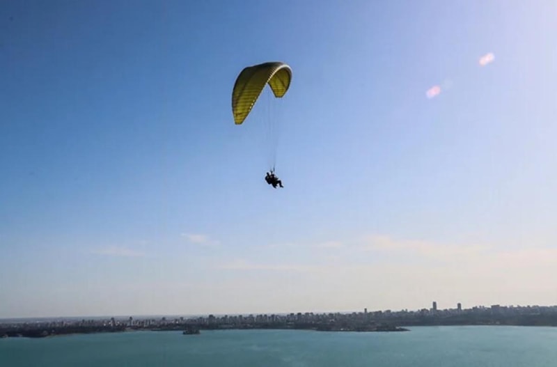 Adana'nın merkez Sarıçam ilçesine bağlı Menekşe Mahallesi'ndeki kalkış alanına giden iki yamaç paraşütü pilotu Mehmet Ağırman ile Furkan Nizamsever, yamaçtan havalanarak paraşütle tandem uçuşu gerçekleştirdi.