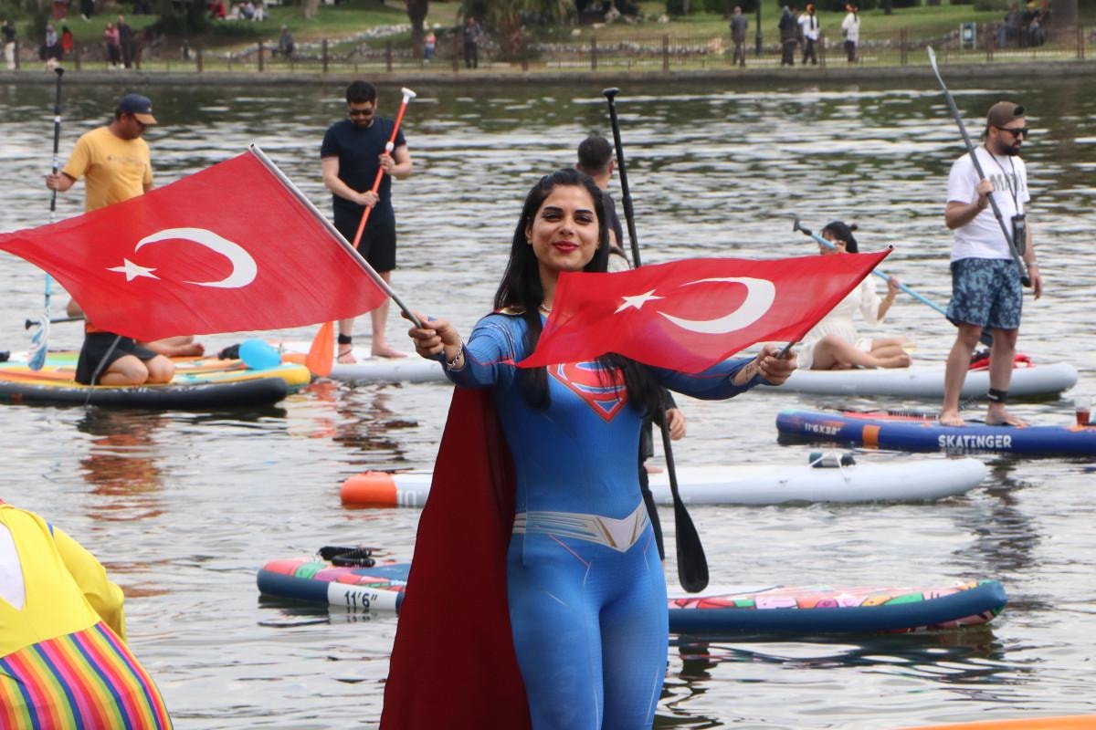 Bazı kanocular da akrobatik hareketleriyle ilgi odağı oldu. Ziyaretçiler, cep telefonlarının kameralarıyla bu renkli ve coşkulu anları ölümsüzleştirdi.