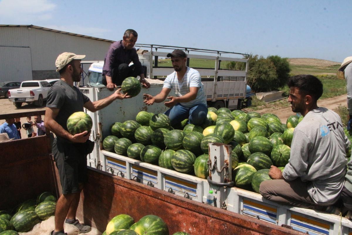 Tarlalarda karpuzun fiyatı, ürün bolluğu yaşanması nedeniyle 13 TL'den 5 TL'ye düştü.