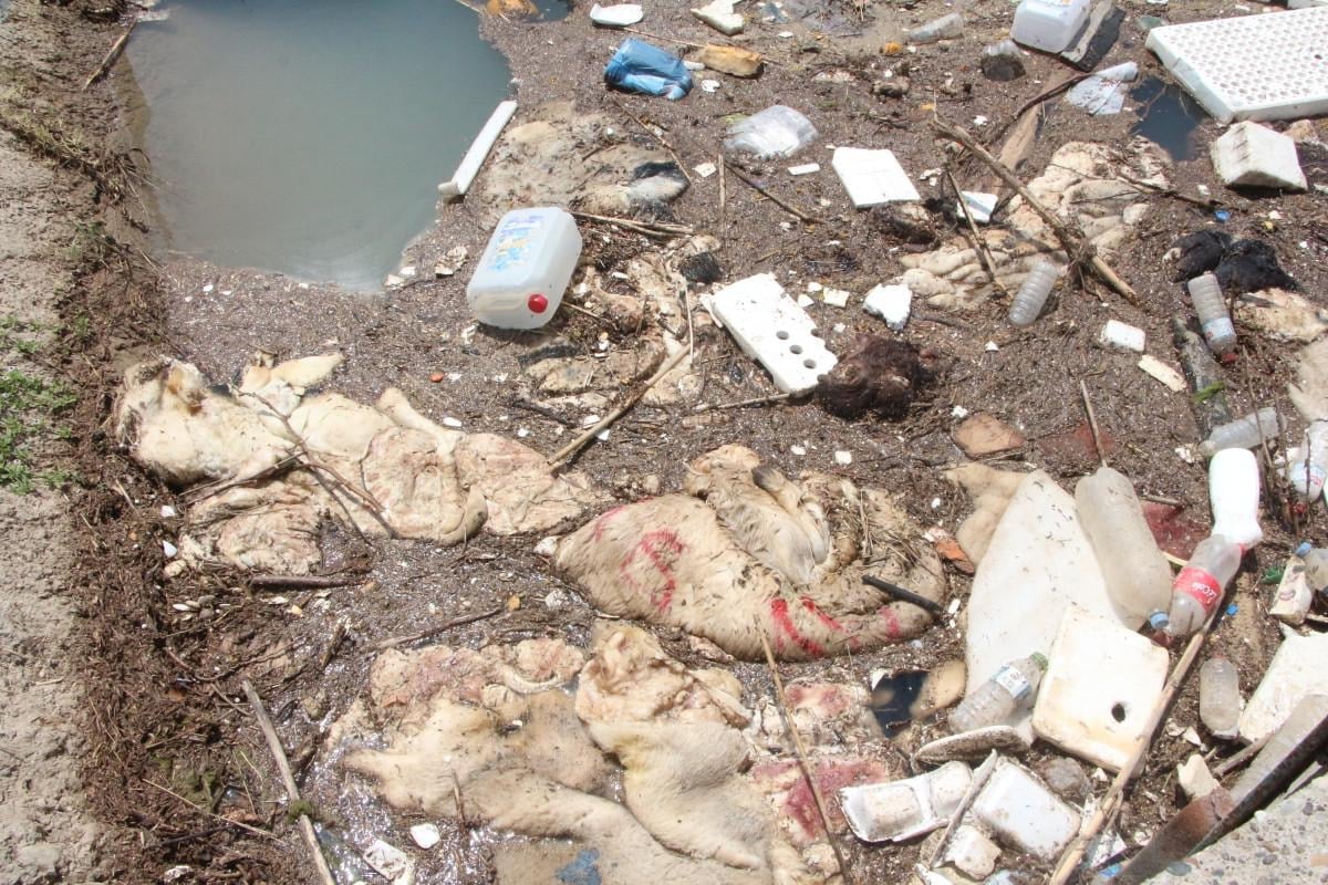 Adana'nın Yüreğir ilçesinde kurbanlık kesen yüzlerce kişi, hayvanlardan geriye kalan deri ve karın gibi atıkları tarımsal alanlarda sulama amaçlı kullanılan kanallara attı.