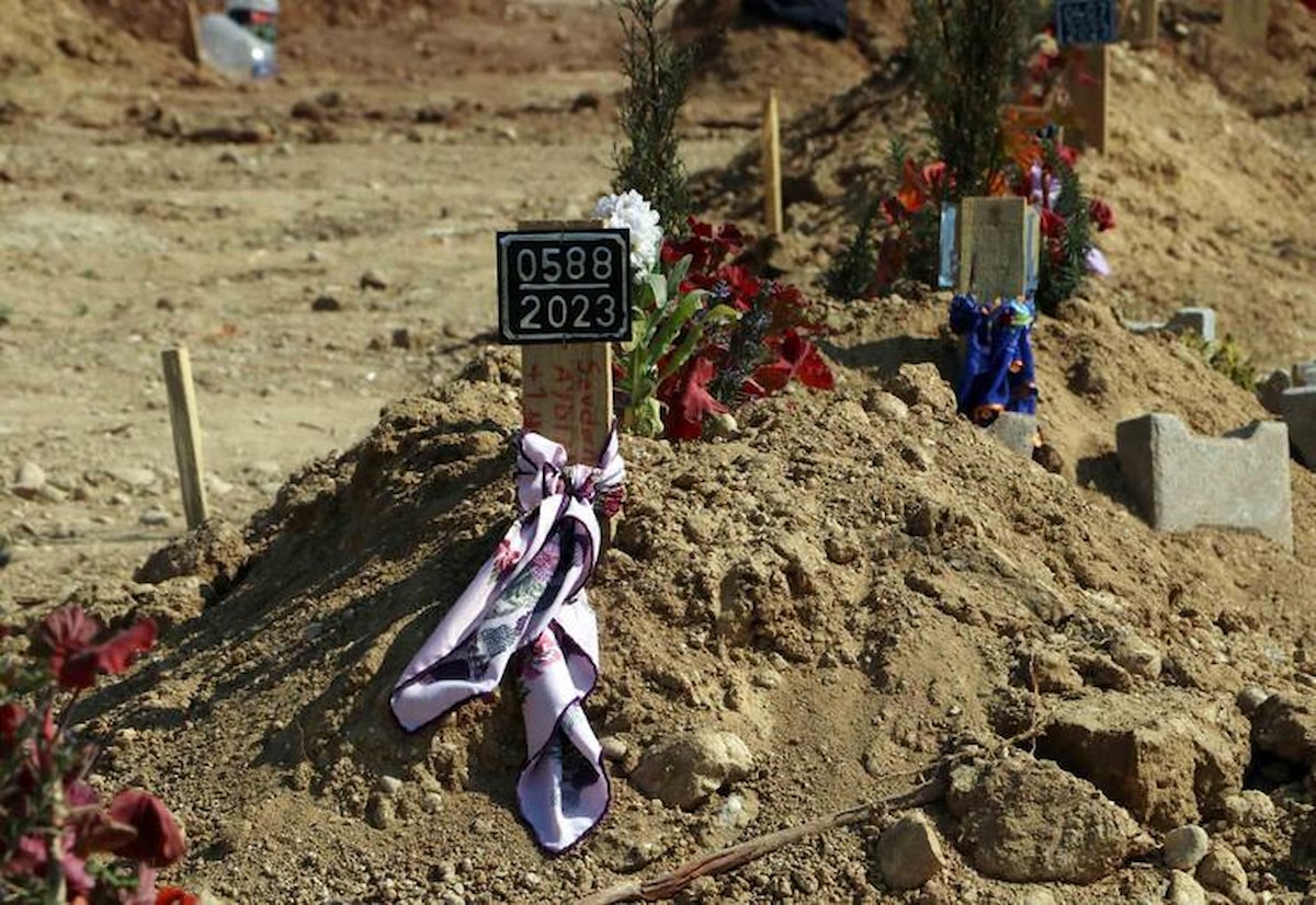 Depremde ölen çocukların mezarlarının başına bırakılan oyuncak ve kıyafetler ise geride kalanların üzüntüsünü gözler önüne serdi.