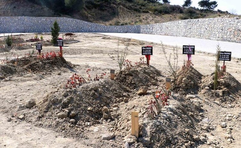 Hayatını kaybedenlerin mezarlarına onlara ait eşyalar ve fotoğraflar bırakıldı.