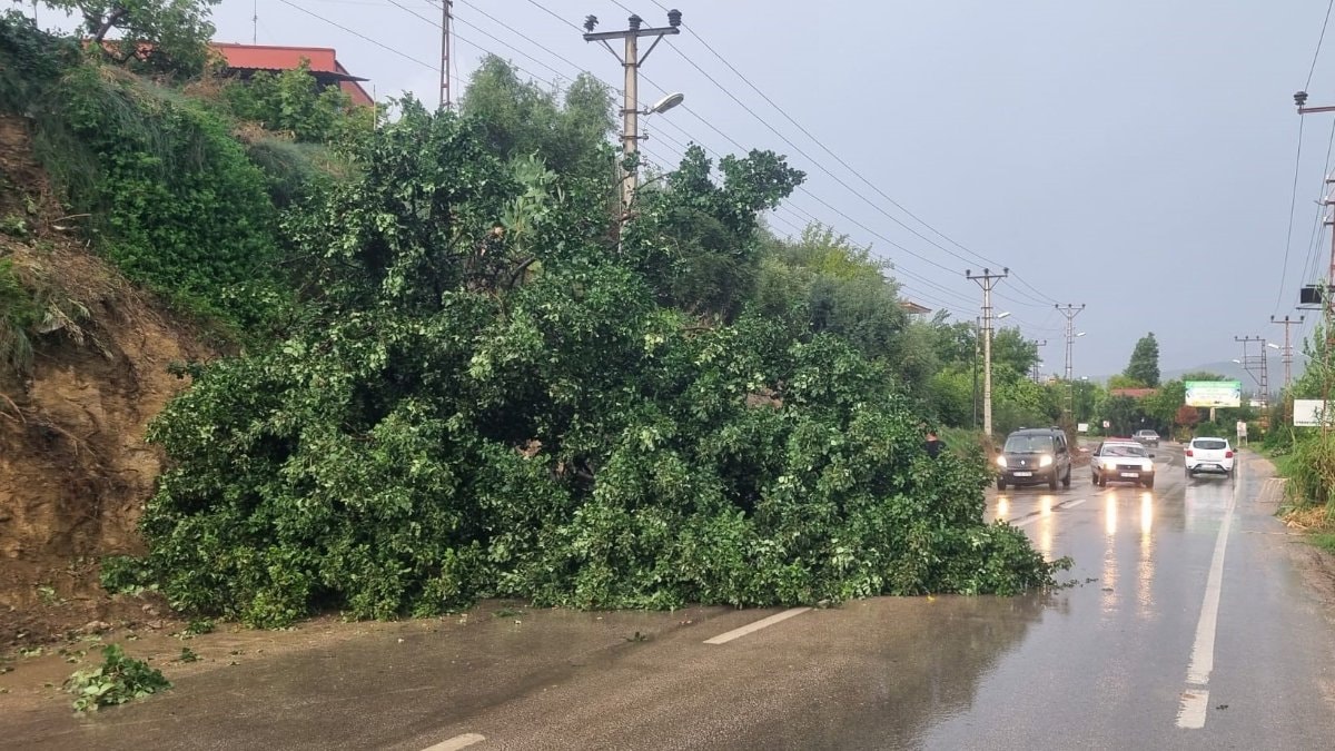 Fırtına ve yağış nedeniyle Mahmutlu Mahallesi Kozan Kadirli yolunda bir çam ağacı yola devrildi.