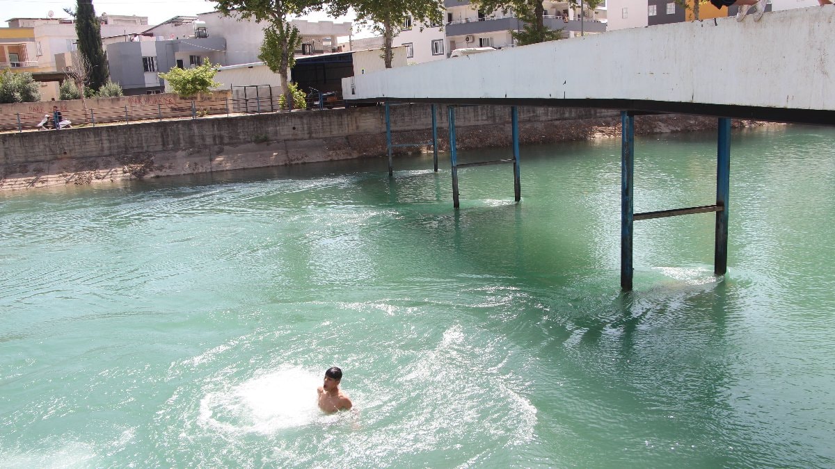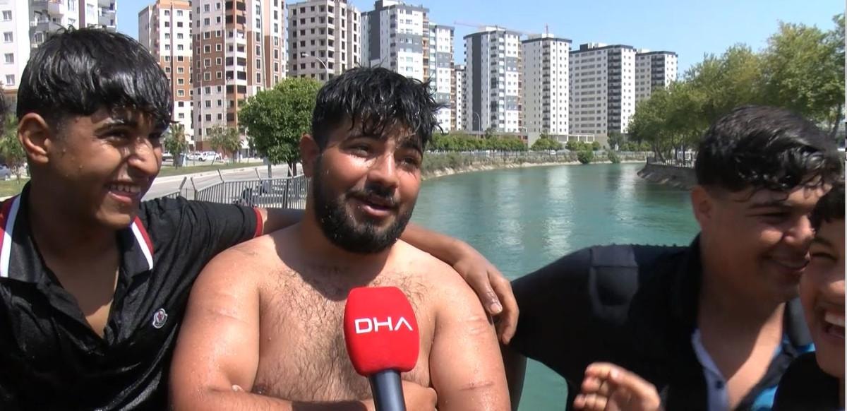 Adana resmen yanıyor, yapacak bir şeyimiz yok. Bir haftadır serinlemek için sulama kanalına giriyoruz. Yaklaşık 10 yıldır bu bölgede yüzüyoruz. Bizim için buralar tehlikeli değil ama çok sayıda kişi burada boğularak hayatını kaybetti. Yüzme bilenler için burası güzel ama bilmeyenler kesinlikle gelmesin.