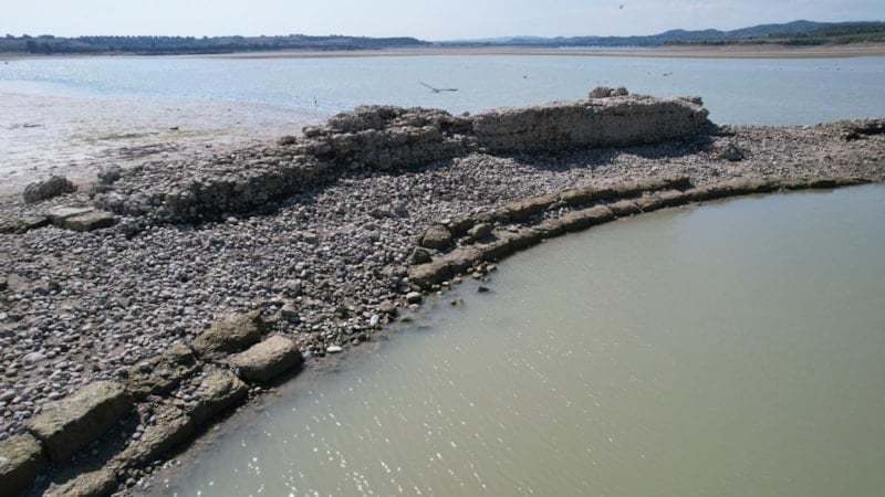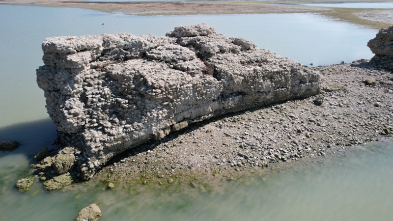 Merkez Sarıçam ilçesi Karaömerli Mahallesi'ne yakın bir noktada bulunan antik kentin bir bölümü, gölde su seviyesinin düşmesiyle görünür hale geldi.