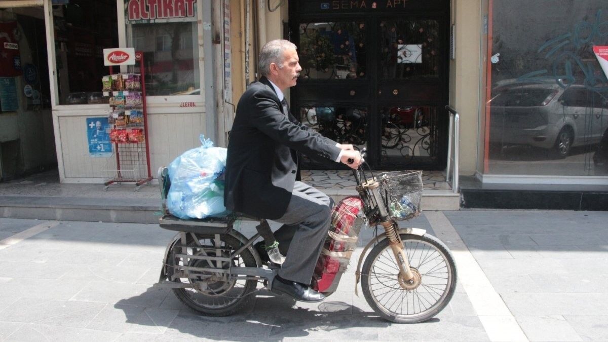 Derneğin de kurucu başkanı olan Yıldırım, her sabah takım elbisesiyle topladığı plastik atıkları satıp, aldığı parayla yardım malzemesi toplamaya başladı. Kentteki onlarca iş yerine geri dönüşüm kutusu bırakan Yıldırım, topladığı atıkların geliriyle yüzlerce aileye yardım yapıyor.
