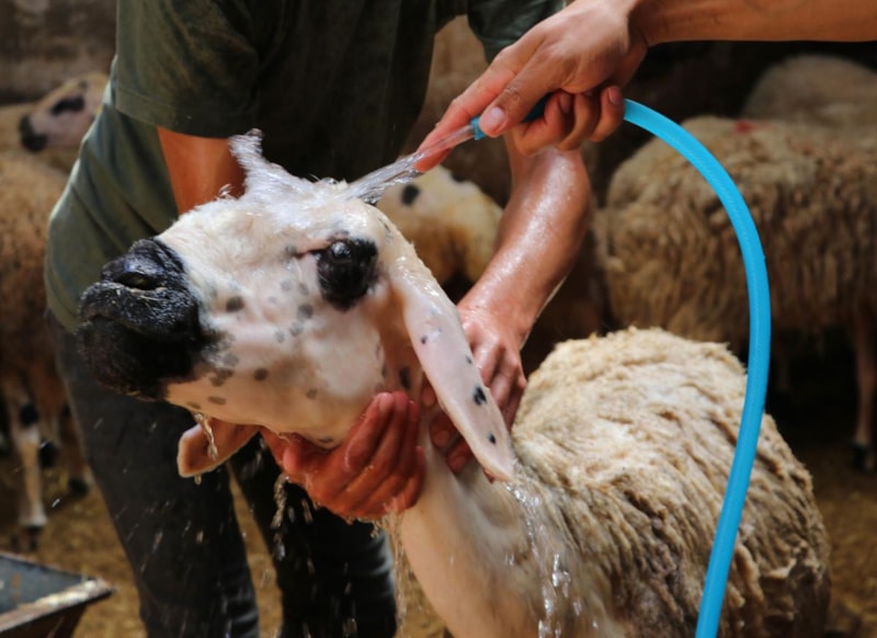 Adanalı besici Zafer Oğuz ise sıcaktan etkilenen koyunları için çareyi buzlu suda buldu. Hayvanlarının içtiği suya buz karıştıran Oğuz, ayrıca hortumla hayvanlarını tek tek yıkadı. Yıkanan koyunlar daha sonra buzlu su içti.