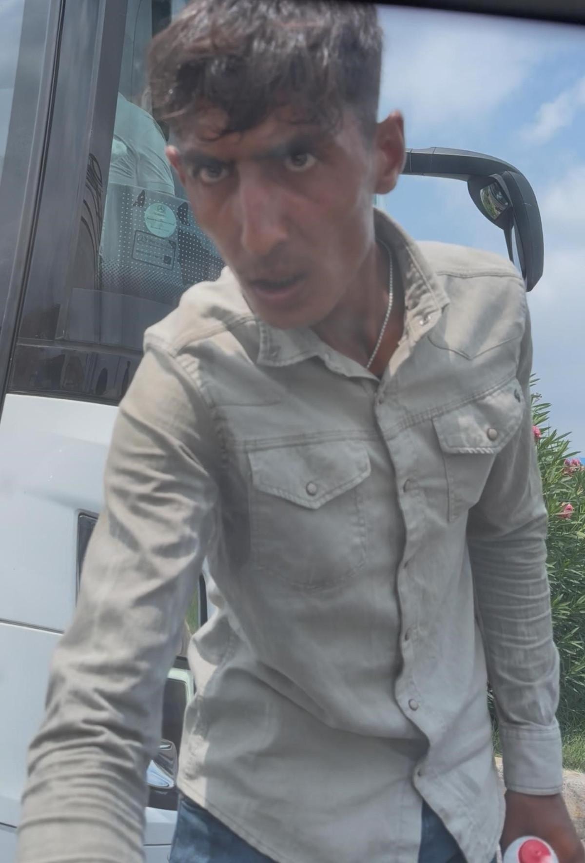 Ayrıca cam silen bir şahsın da kendisini görüntüleyen sürücüyü cep telefonuyla çekmesi pes dedirtti.