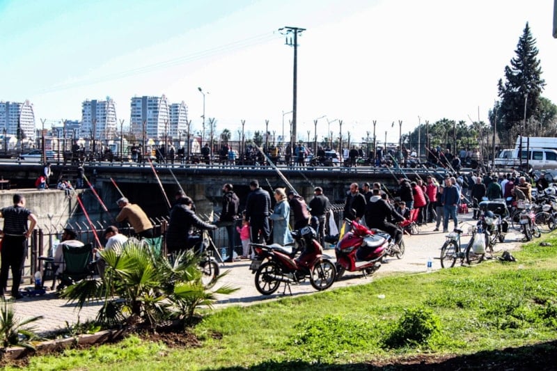 Seyhan ilçesi Mestanzade Mahallesi üzerinde bulunan Regülatör Köprü üzerinde ve kenarında çok sayıda vatandaş oltalarını suya attı.