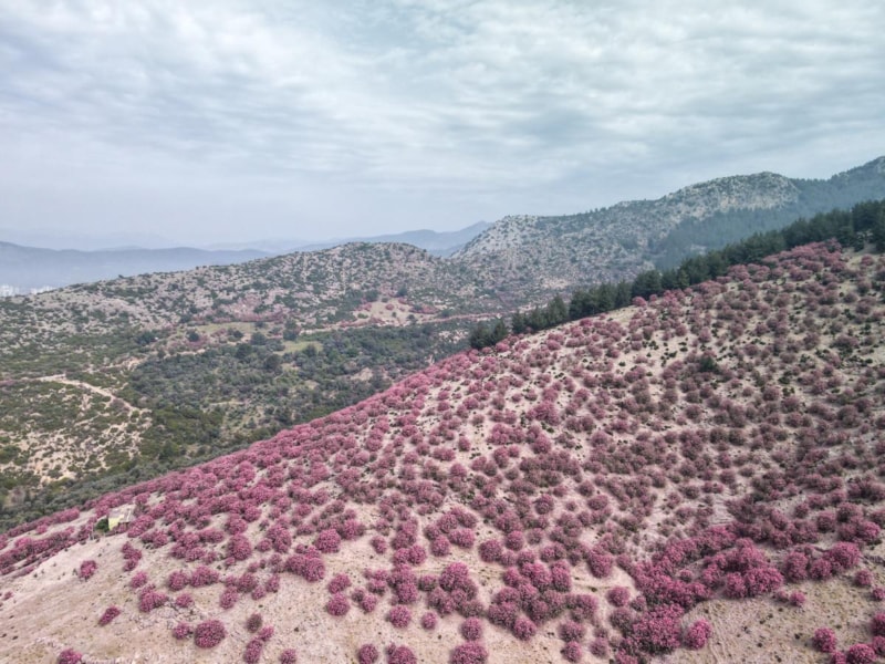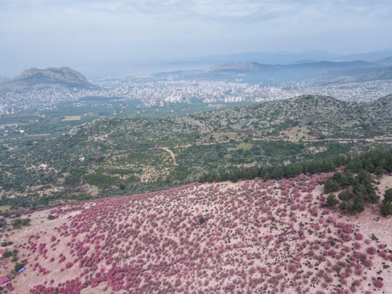 Havaların ısınmasıyla birlikte doğa da canlanmaya başladı. Çiçeklerin açmasıyla birlikte yamaçları süsleyen zakkumlar, dağları pembe bir örtüyle kapladı.