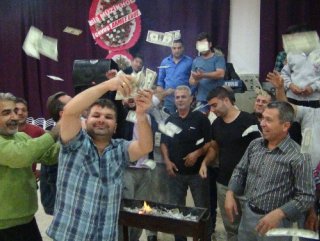 Kozan'da bulunan bir düğün salonunda bir araya gelerek doyasıya oynayıp eğlenen müzisyenler, çuvallarla getirdikleri sahte dolarları önce oynayanların üzerine attılar daha sonra yerden toplayarak yanlarında getirdikleri mangalda yaktılar.