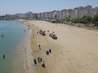 Ramazan Bayramı'nın yaklaşmasıyla belediyeler, plajları atıklardan temizleme başladı. Adana'nın Karataş ve Yumurtalık ilçelerindeki plajlar, belediye ekipleri tarafından özel donanımlı makinelerle atıklardan arındırıldı.