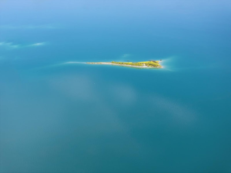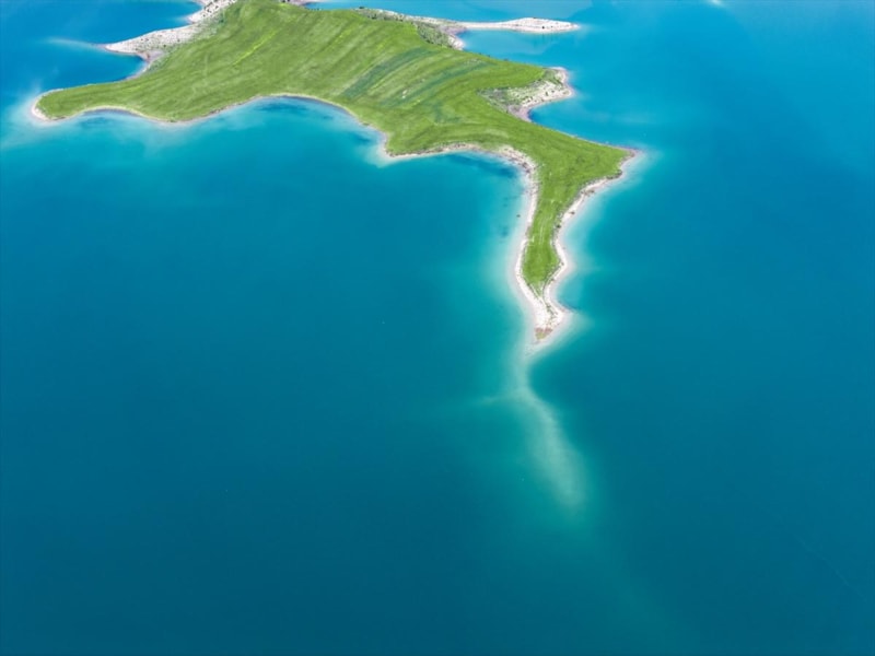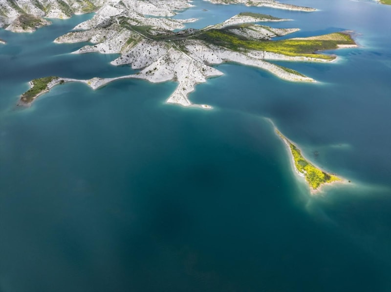 Baraj gölü içinde oluşan adalar, toprağının beyazı ve turkuaz rengi sularıyla Maldivler’i andırıyor.