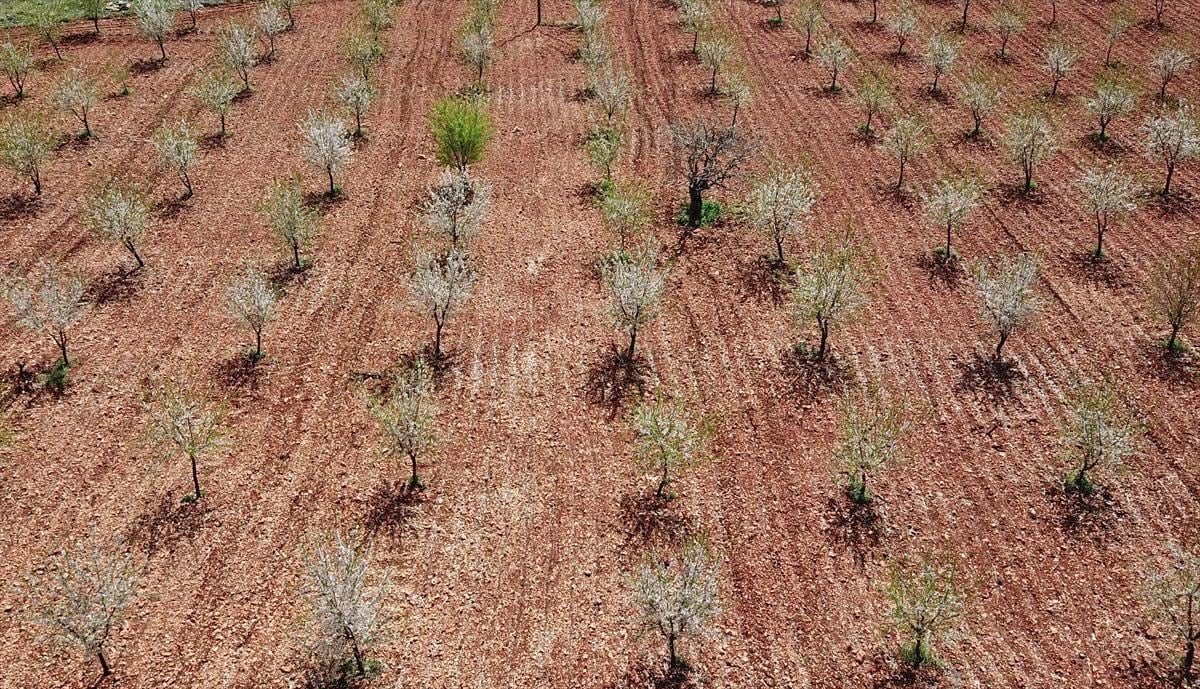 Tarlalarına giden üreticilerin, çiçek açan badem ağaçlarını görünce hayatın yeniden yaraları saracağına karşı umutları yeşerdi.