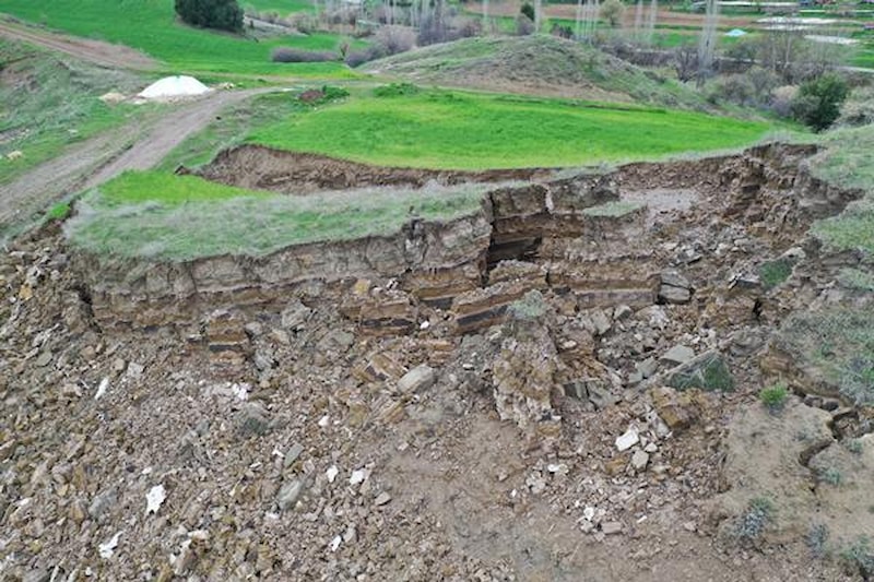 Adıyaman'ın Girik köyündeki 100 metrelik tarım arazinde, depremlerin ardından 4 metre derinliğinde yarıklar oluştu.