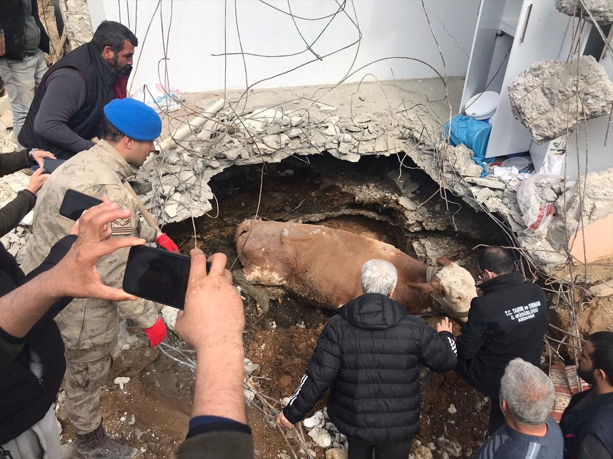 Arama kurtarma çalışmalarının bitirildiği Adıyaman'da bu kez mucizeyi bir inek gerçekleştirdi.
