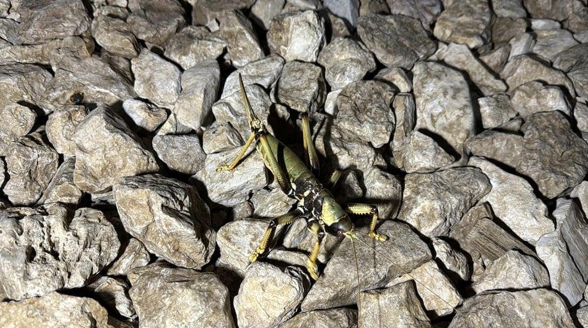 Yaklaşık 20 santim büyüklüğünde olan dev etçil çekirgeler burada bulunan gazeteciler tarafından kayda alındı.