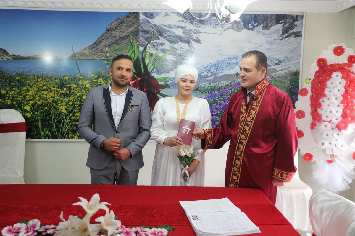 Akbıyık, evlilik cüzdanını teslim ettiği çifte mutluluk diledi.