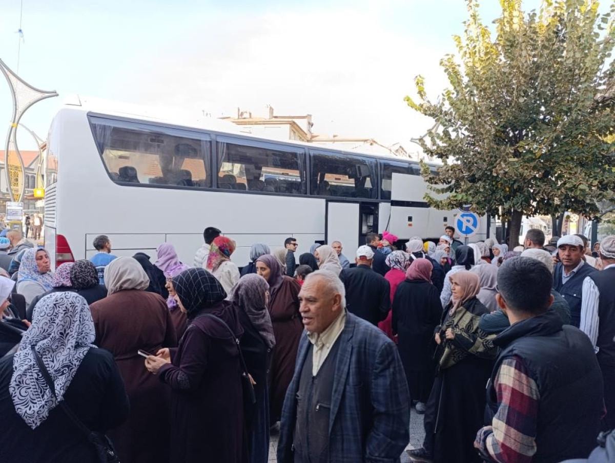 Sabah erken saatlerde ilçe meydanında bir araya gelen umre kafilesi, otobüslerle İstanbul'a harekette etti.
