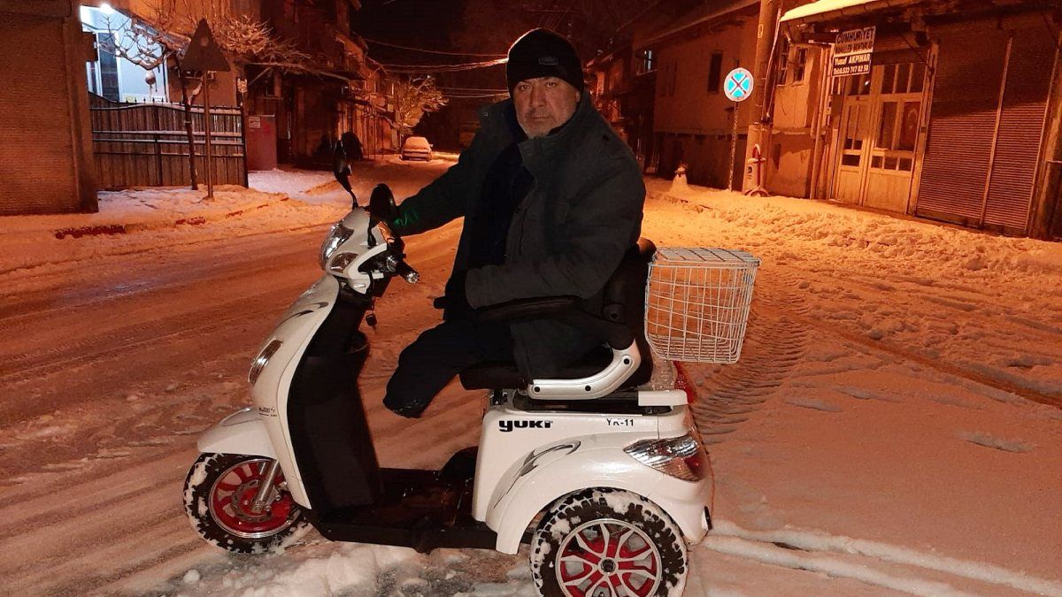 Salih Topak, akşam kar yağdığını görünce çocukluğunun aklına geldiğini belirterek, "Çocukken kar yağdı mı annemizin naylon ayakkabılarını alarak kaymaya giderdik. Bir anda o günler aklıma geldi. Kendimi sokağa attım. Çocuklar gibi sokaklarda akülü aracımla gezdim. Allah’ıma şükürler olsun ki rahmetini bol bol verdi. Bu güzelliği bize gösterdi." dedi