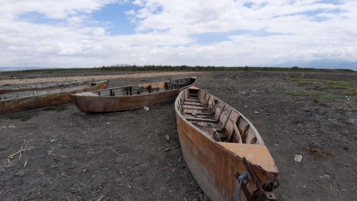 Önceki yıllarda balık tutanlar, avcılık yapanlar ve en önemlisi kamış toplayıcılarının kayıklarla ilerlediği yerlerde suların çekilmesi ile şimdi motorlu taşıtlarla açılan yollardan göl suyuna ulaşılıyor. Gölde kullanılan ve şimdilerde karada oldukları gözlenen kayıklar ise ürkütücü manzarası ile adeta bir kayık mezarlığını anımsatıyor.