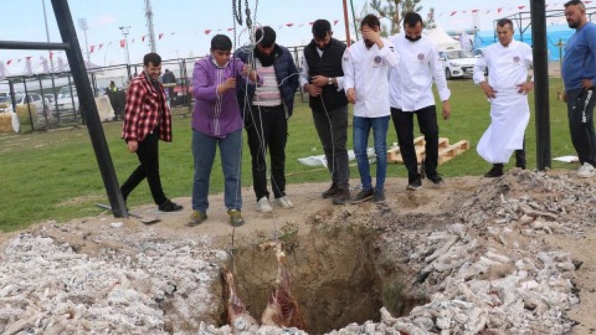 Pişirilmesi için hazırlanan boğa, caraskal ile yarısı dışarıda kalacak şekilde iki ayağından bağlanarak kuyuya yerleştirildi. Pişmeye başlayan boğa, bağlandığı yerdeki etlerin kopmasıyla kuyuya düştü. Festivalde görevli aşçılar, boğayı çukurdan çıkarmak için uzun süre uğraş verdi. Caraskal ile yeniden kaldırılan boğa, kaburgalarından asılarak pişirildi. Boğanın eti, cağ kebabı şeklinde kesilerek ikram edildi.