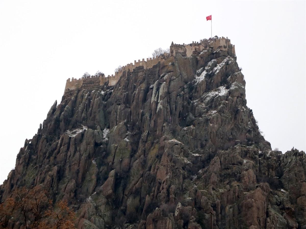 Hava sıcaklığının 2 derece civarında seyrettiği kentte Karahisar Kalesi'nin zirvesinde ise hafif beyaz örtü oluştu.