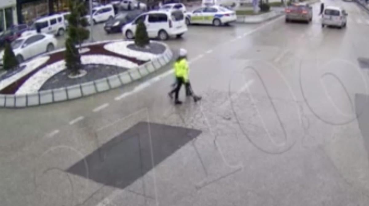 Vilayet Kavşağı’nda yaşanan yoğun trafik üzerine bölgeye giden bir kadın trafik polisi, araçların hızla geçtiği yolda karşıdan karşıya geçmeye çalışan bir çocuğun zorluk çektiğini fark etti.