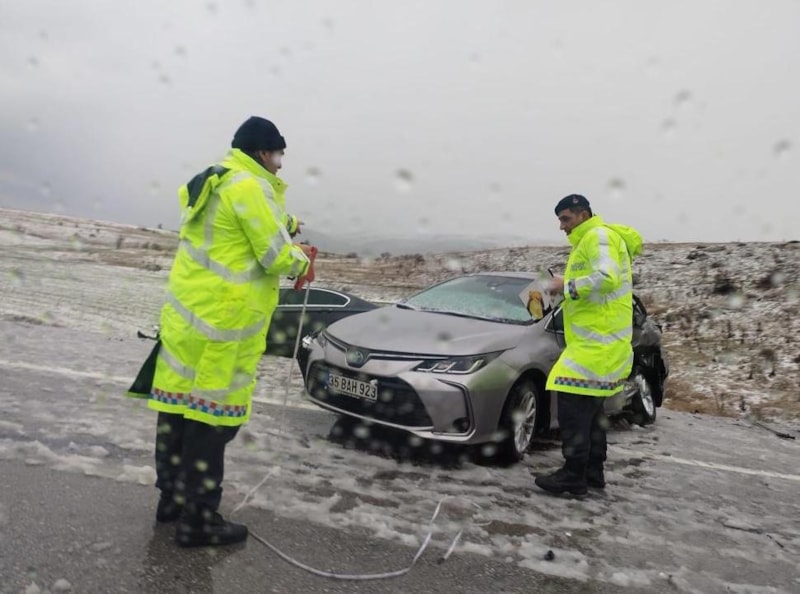 Yaklaşık 20 dakika yağan dolu yağışının durmasının ve kaza yapan araçların güvenli alanlara çekilmesinin ardından kara yolunda trafik normale döndü.