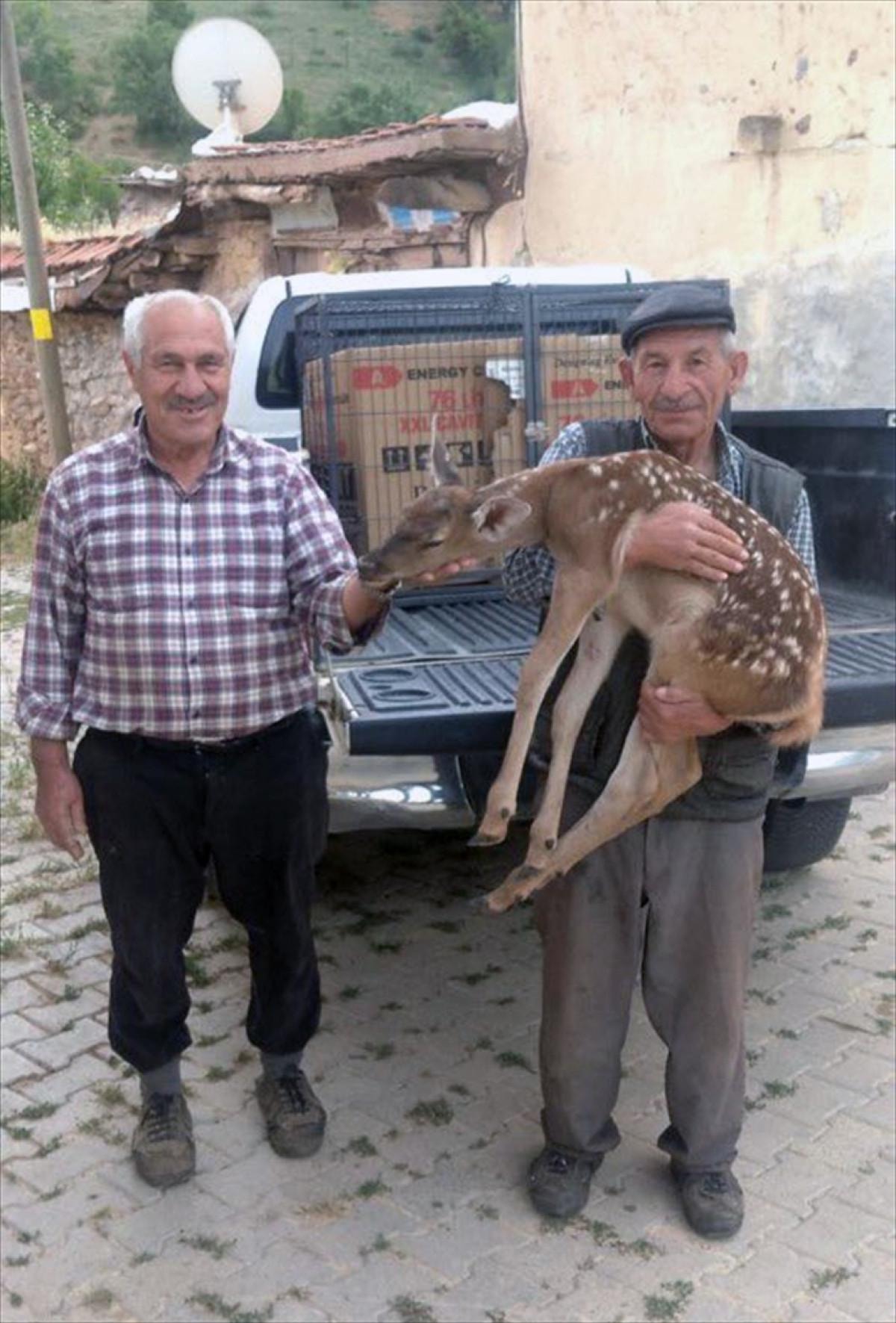 Coşar, kızıl geyik yavrusunu Doğa Koruma ve Milli Parklar görevlilerine teslim etti.