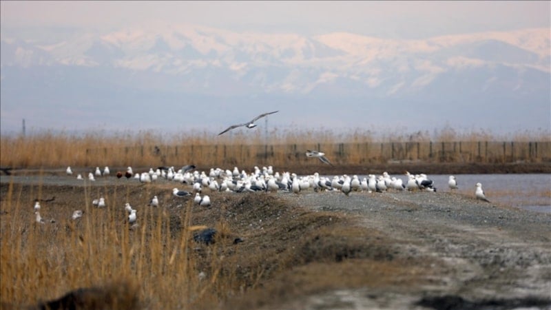 Iğdır’da havaların ısınmasıyla birlikte Ağrı Dağı eteklerindeki sulak alanlar göçmen kuşların uğrak noktası haline geldi.