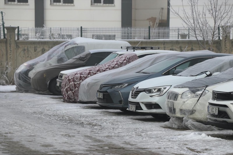 Vatandaşlar araçlarını branda, naylon ve battaniyelerle örterek soğuktan korumaya çalıştı.