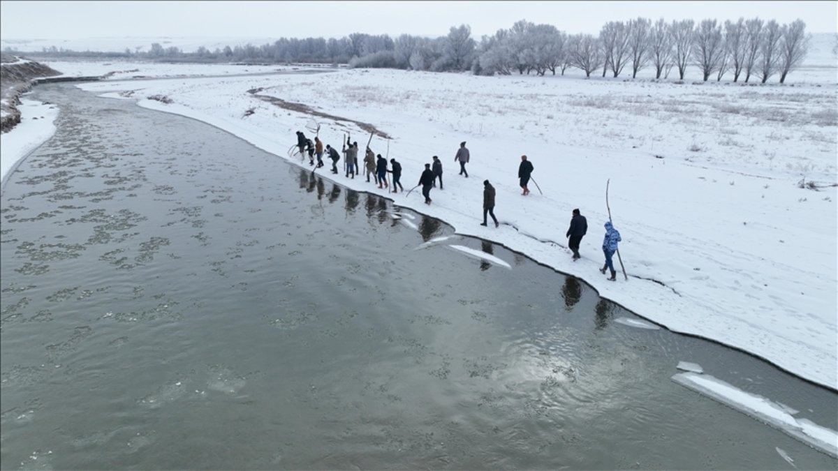 Ağrı il merkezine yaklaşık 25 kilometre uzaklıkta bulunan Çakıroba köyündeki halk, her kış mevsiminde geleneksel yöntemlerle balık avlamak için Murat Nehri'ne geliyor. Zorlu kış koşullarının hüküm sürdüğü köyde köylüler, ellerine odun parçaları ve "dirgen tor" adı verilen ağları alarak, buzla kaplı nehrin kıyısına ulaşıyor.