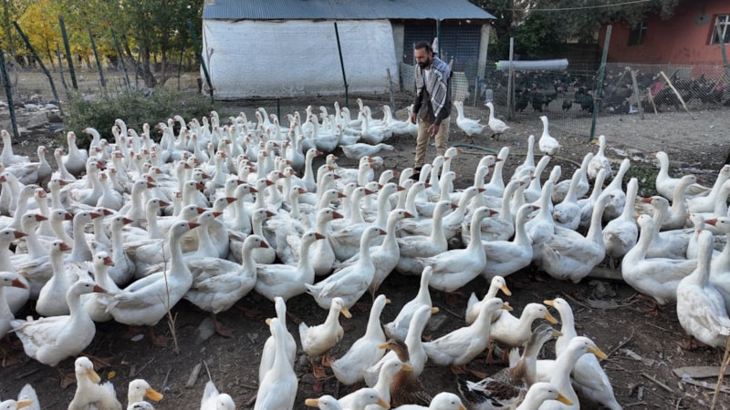 Kentte kanatlı hayvan yetiştiriciliği yapan Hüseyin Kösedağ, ıslık sesiyle çiftliğindeki yüzlerce hindi, kaz, ördek ve tavuğu etrafına topluyor. Kösedağ, “Kendi hayvanımızı üretiyoruz, dışarıdan almıyoruz. Bundan dolayı hayvan bize alışıyor, bizi bir anne gibi görüyor" dedi.
