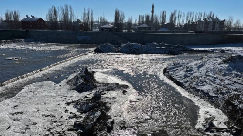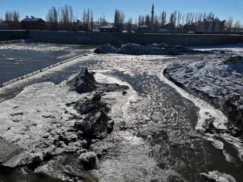 Ayrıca Murat Nehri'nin yüzeyi de buzla kaplandı.