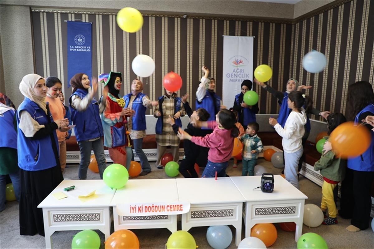 Ağrı Gençlik ve Spor İl Müdürlüğünden yapılan yazılı açıklamaya göre, Gençlik Merkezi gönüllüleri, ailesiyle kentte misafir edilen Cemre Demir için sürpriz doğum günü etkinliği düzenledi.