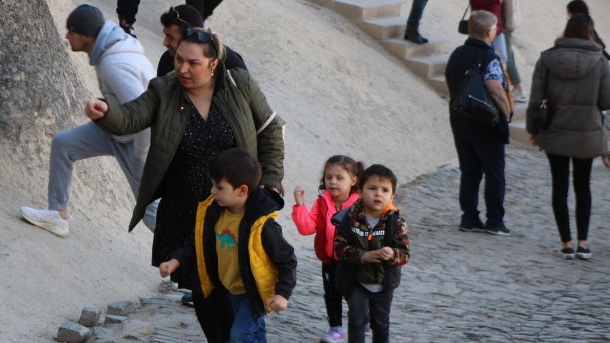 Hafta sonunu da fırsat bilen aileler, Türkiye'nin önemli turizm merkezlerinden Kapadokya'nın yolunu tuttu.