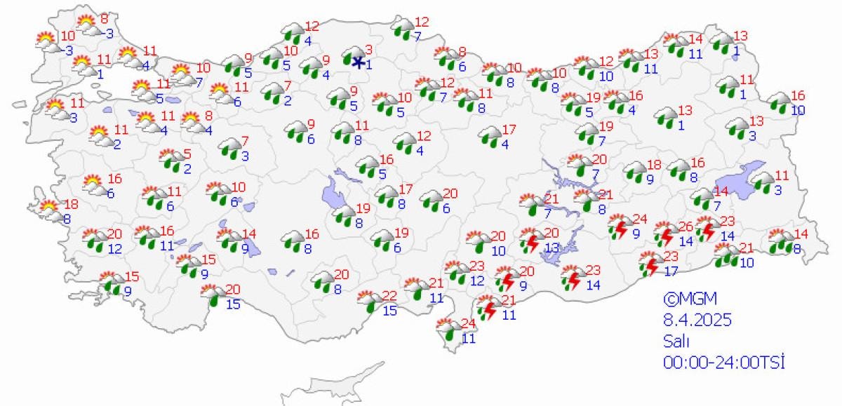 Valiliğin sosyal medya hesabından yapılan açıklamada, Meteoroloji Genel Müdürlüğüne göre Türkiye'nin 7 Nisan Pazartesi günü kuzeybatı (Trakya) kesimlerden itibaren yeni bir soğuk ve yağışlı havanın etkisi altına gireceğinin tahmin edildiği belirtildi.